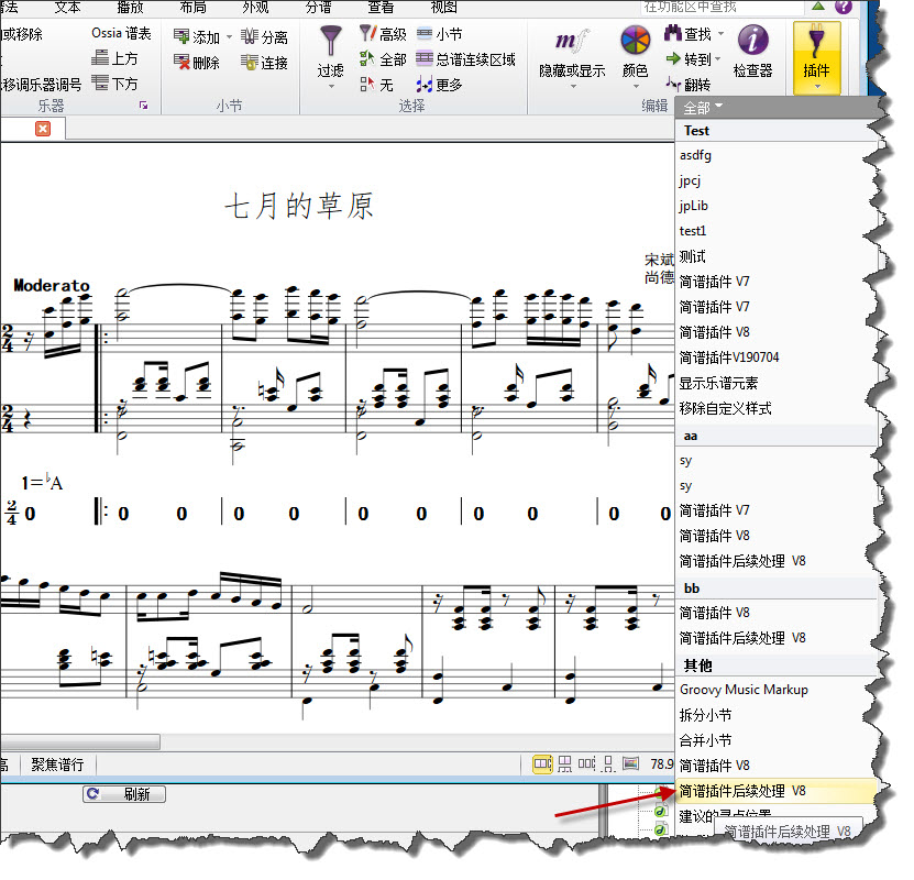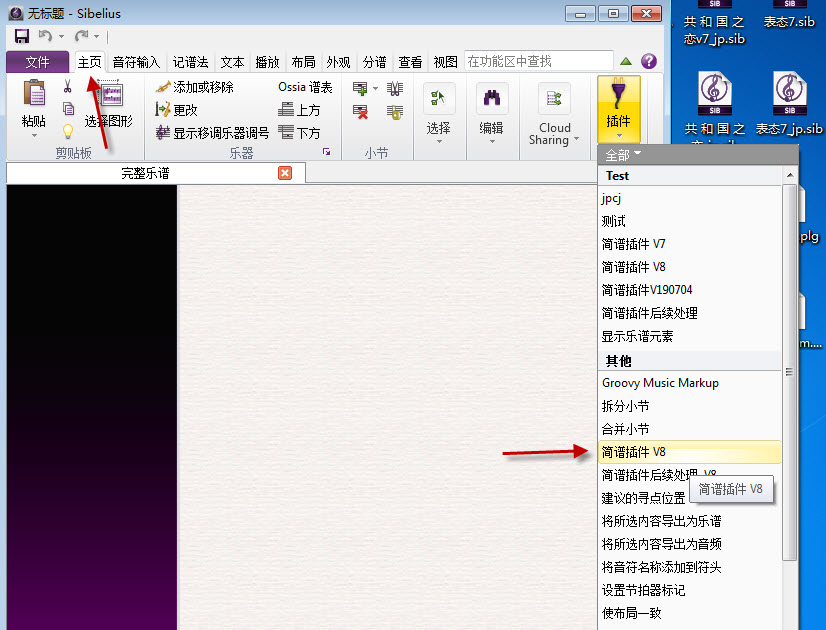 打开Sibelibe在主页选卡的插件栏里打开简谱插件: