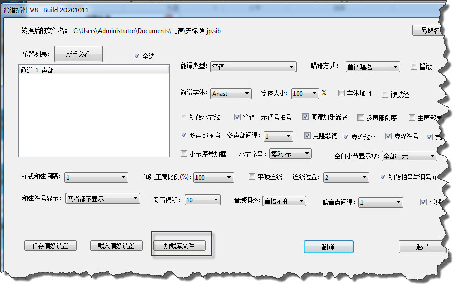 打开简谱插件,加载库文件:
