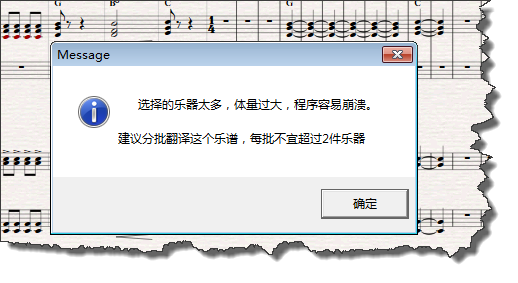 如果选择的乐器太多,超过程序的承受能力,会有警告信息,并且给出建议: