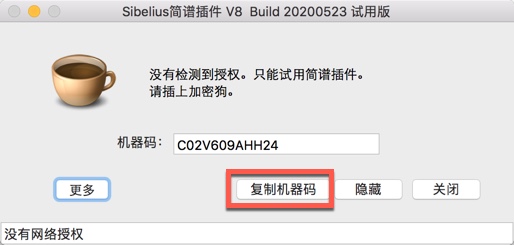 苹果电脑同样也在简谱插件软件的窗口上复制序列号: