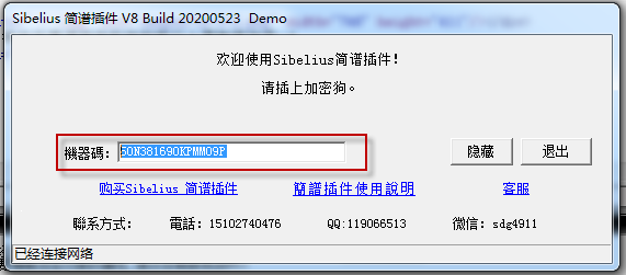 购买简谱插件后在加密狗邮寄期间可以使用网络临时授权,做到即买即用。
